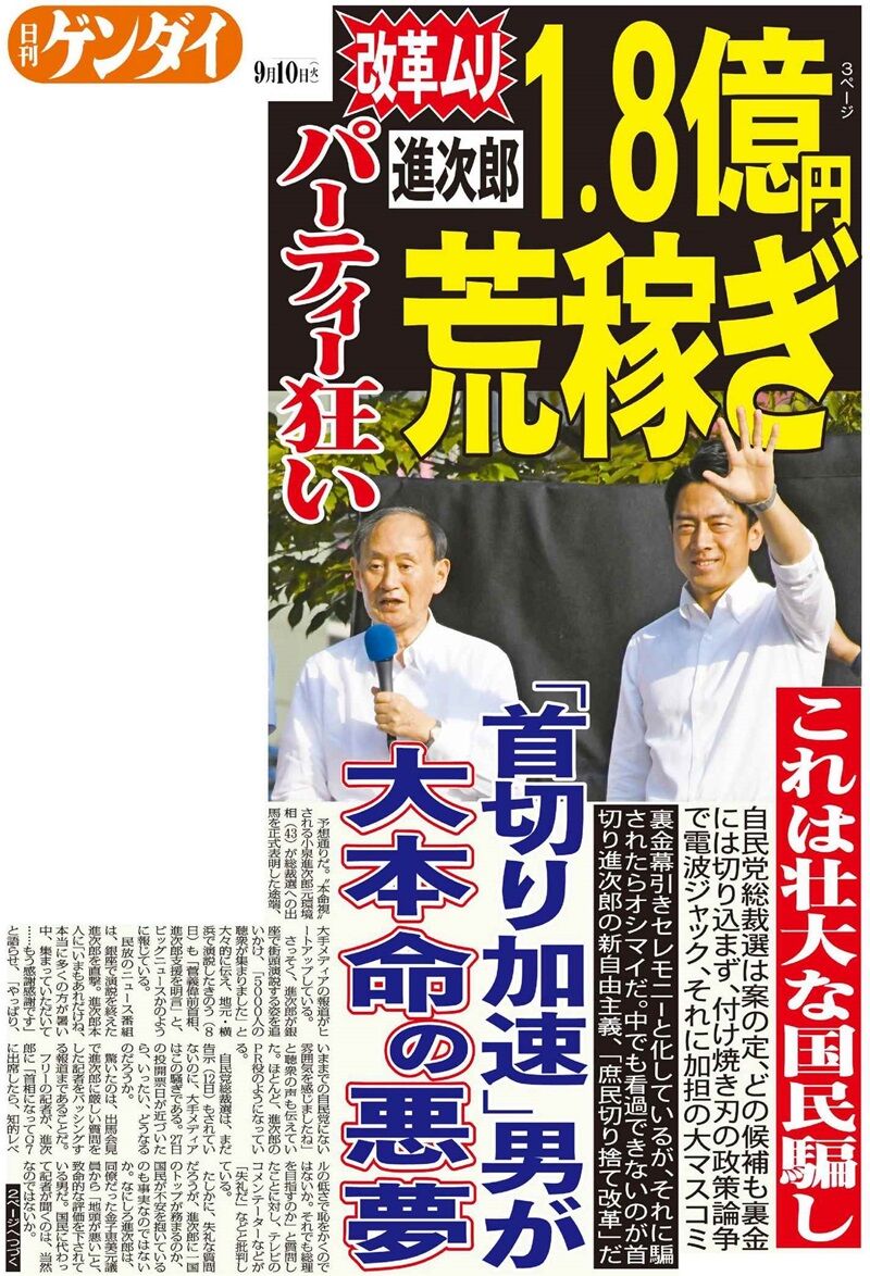 ※2024年9月9日 日刊ゲンダイ1面 紙面クリック拡大 文字起こし
