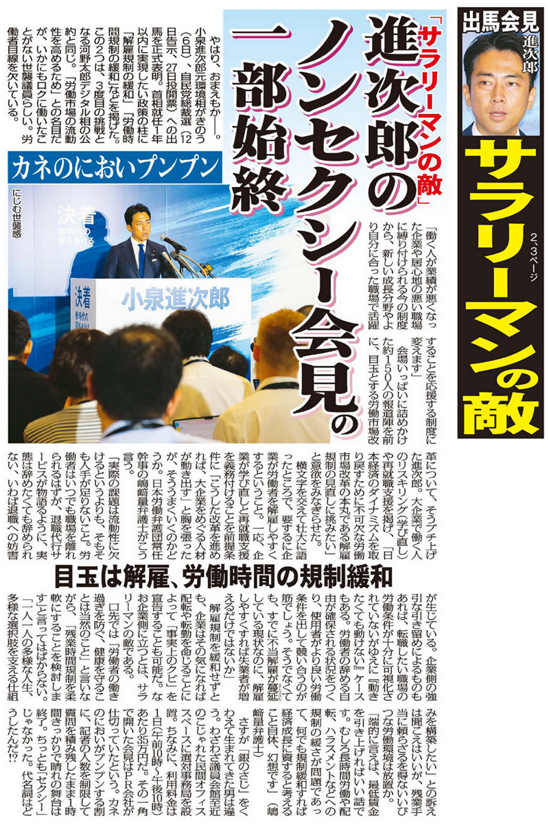 小泉進次郎は「サラリーマンの敵」…!