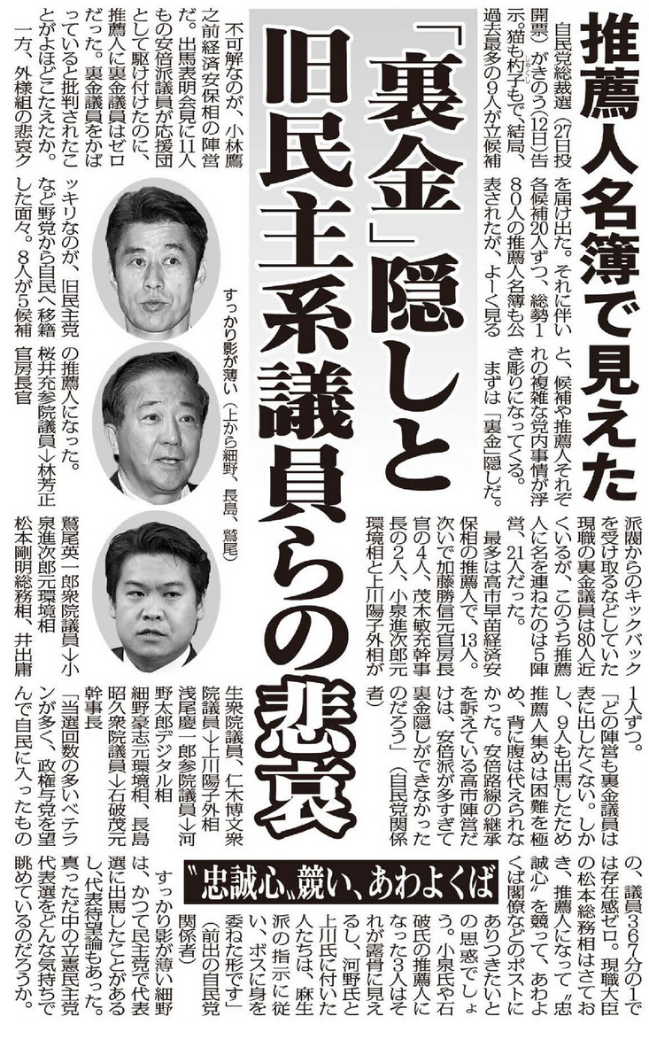 自民党総裁選候補9人の「推薦人名簿」で見えた