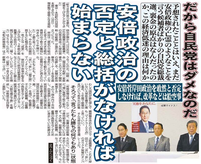 安倍菅岸田政治を敢然と否定しなければ、改革などは絵空事。