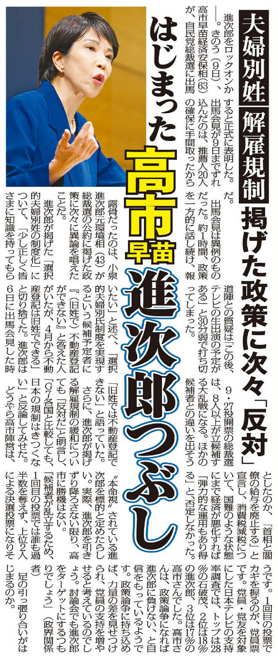 高市早苗の「進次郎つぶし」が始まった!