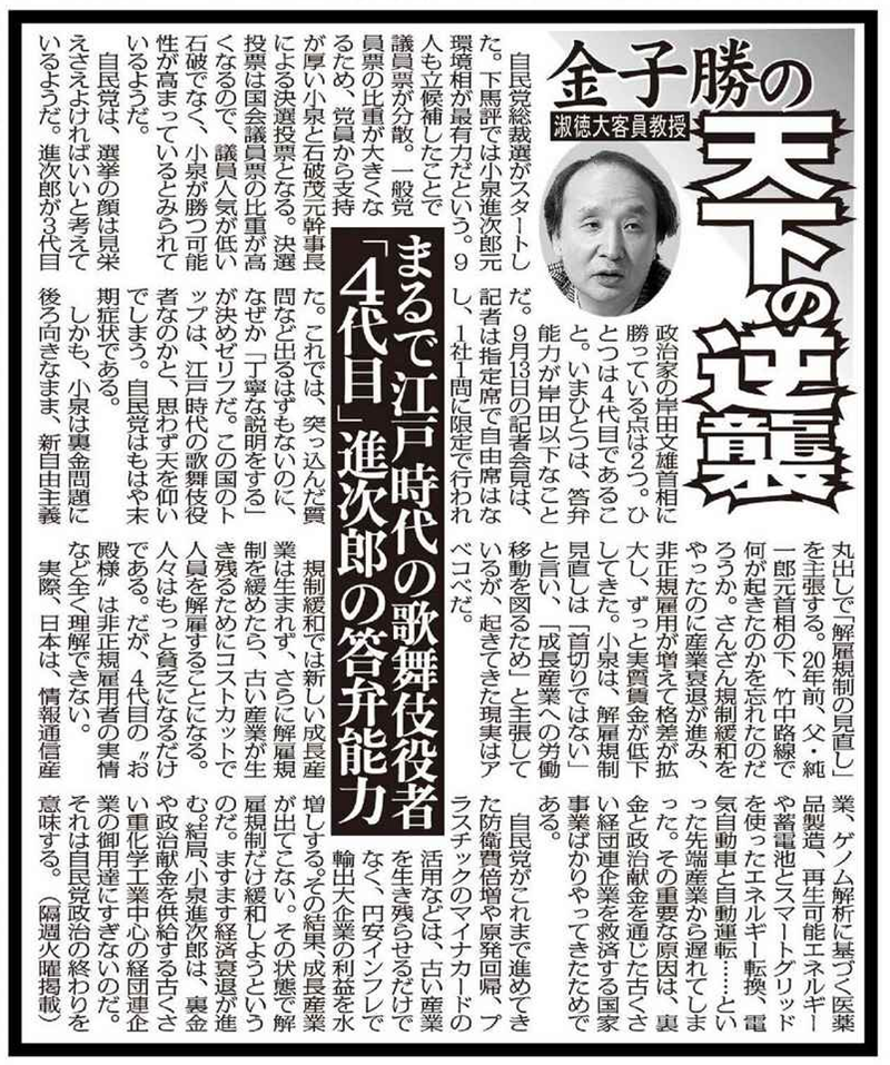 「4代目」進次郎の答弁能力は、まるで江戸時代の歌舞伎役者だ