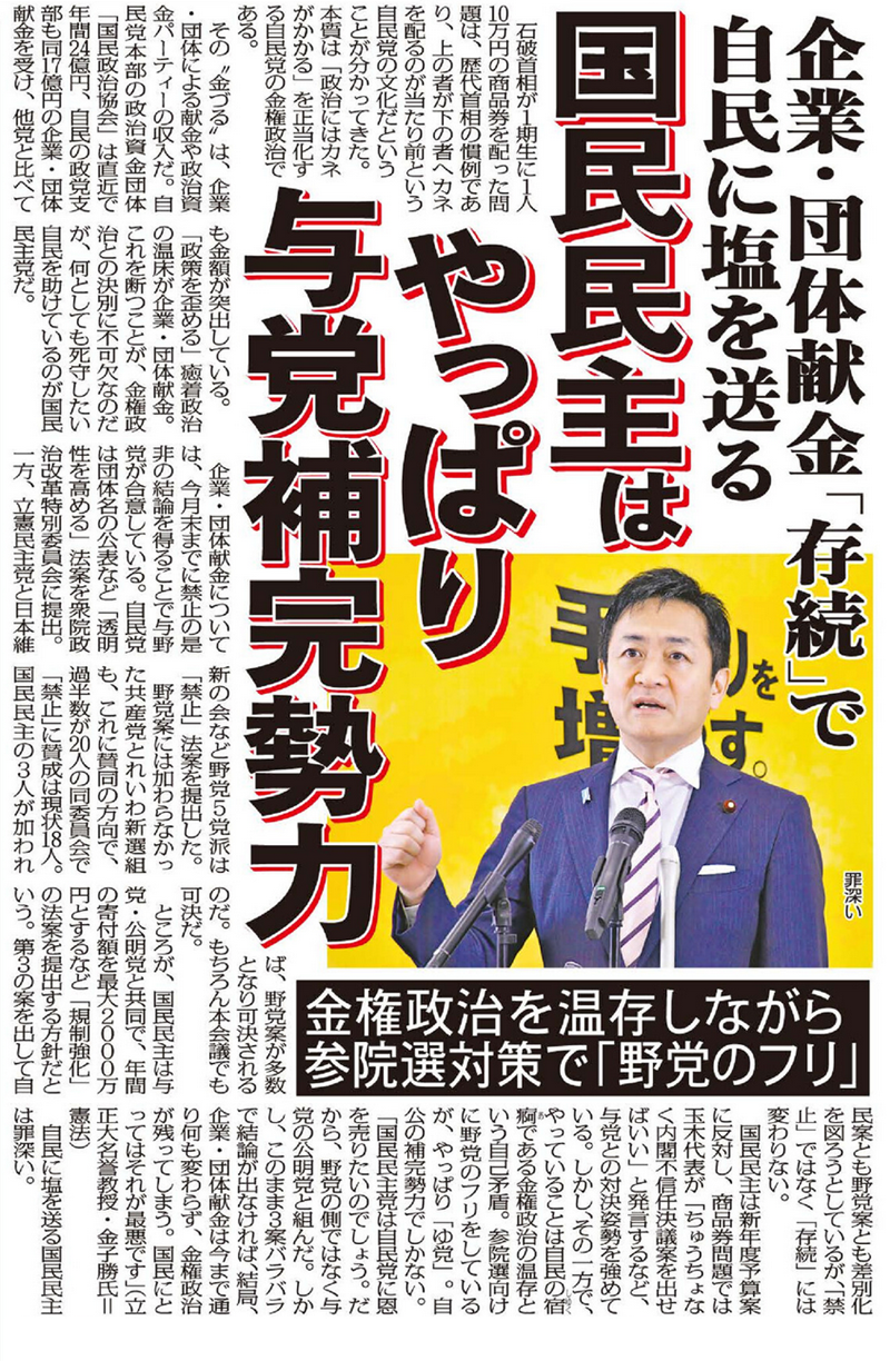 そんな企業献金を温存しようとする政党に野党を名乗る資格はない。